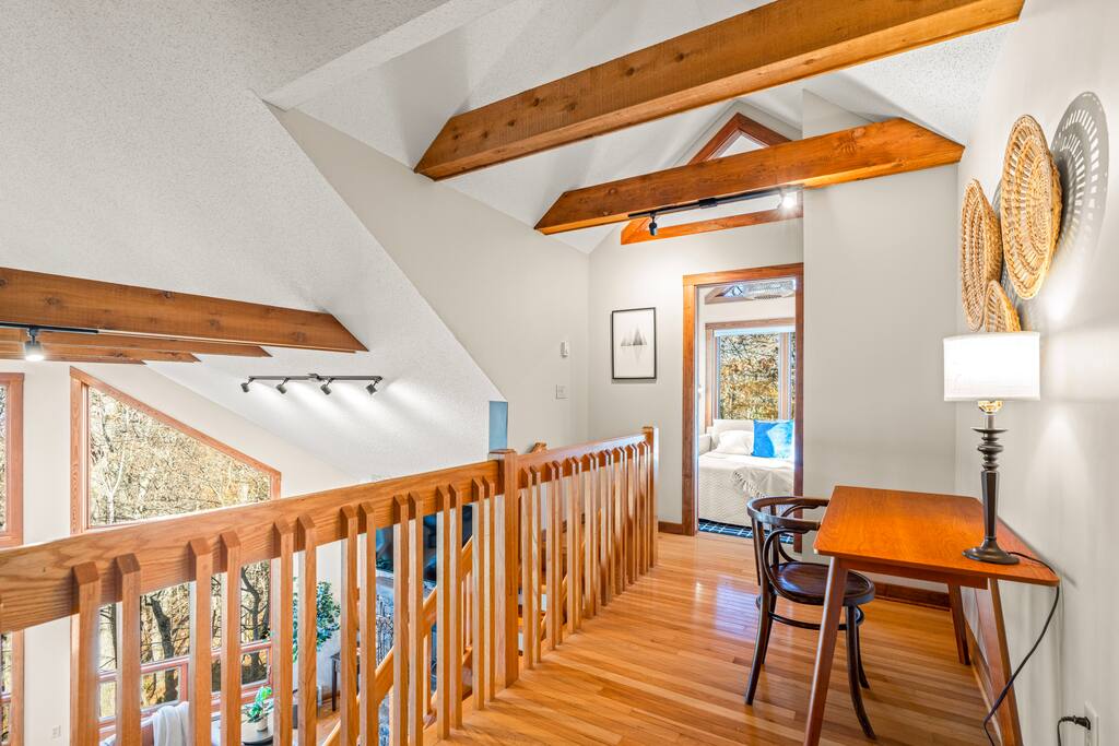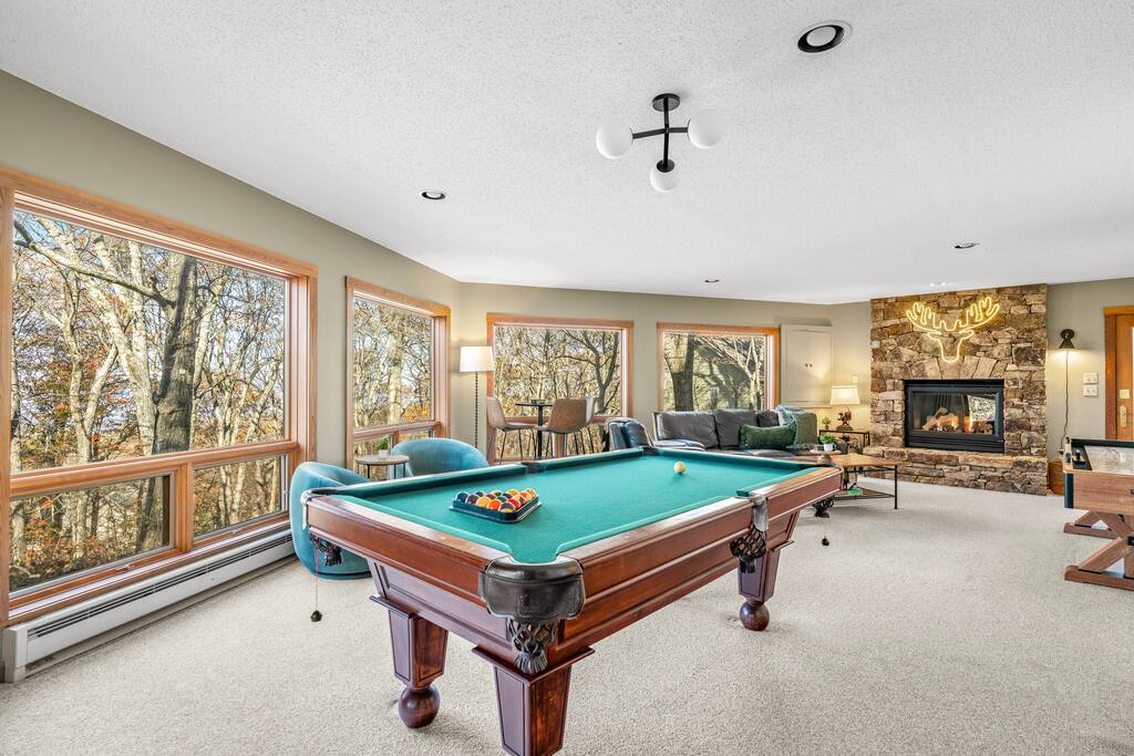 Hilltop Hideaway is located in the heart of beautiful Wintergreen in Virginia, which has tons to do for all ages, year-round. We are just a few minutes’ drive to the slopes and all the dining and entertainment at Wintergreen. Some of the best hiking trails in the state are off the Blue Ridge Parkway (15 minutes from the home), plus there are other great trails just down the street. Also nearby are two sandy-beach-entrance lakes plus a community pool for swimming, and over dozen wineries, breweries, and distilleries- all within a 30 minute drive. The house has 5 bedrooms and 3 bathrooms, with the layout as follows: Main level (note: zero steps required to enter home from driveway) - Main level deck features covered dining for 6, propane firepit with 4 adirondack chairs, and gas grill (propane provided for firepit and grill) - Living room with wood-burning fireplace (wood provided) and big screen smart TV - Dining area for 8, plus room for 4 more at the kitchen bar - Fully stocked kitchen with brand new counters, stainless appliances, island with bar seating - BR1: King bedroom with workspace area and bathroom access - Full bath with dual entry (BR1 and hallway)- double vanity and shower/tub combo Upper level: - Loft area overlooking living room with desk - BR2: King bedroom with workspace area - BR3: Small bedroom with sofa bed and smart TV - Full hall bath with shower/tub combo Lower level: - Lower level deck features hot tub and propane firepit with seating for 8 - Additional living room / game room with pool table, shuffleboard, arcade machine, large smart TV, and multiple seating areas - BR4: Queen bedroom - BR5: Bunk bedroom with twin-over-full bunk bed plus twin-over-twin bunk bed, and smart TV - Full hall bath with shower/tub combo - Laundry room with full size washer and dryer